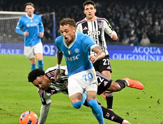 比賽剛剛開始不久,麥克托米奈門前搶點頭球攻門,只可惜頂偏了。第7分鐘,那不勒斯進球了!內雷斯埃禁區右側送出橫傳,霍伊倫門前包抄射門,球進了!那不勒斯獲得夢幻般的開局。第20分鐘,伊爾迪茲外圍嘗試一腳遠射,踢飛了。6分鐘后,迪洛倫佐頭球攻門被門將神奇化解。隨后,凱利門前浪費良機。半場補時階段,麥克托米奈頭球攻門擊中立柱。半場結束,那不勒斯1-0領先尤文圖斯。
